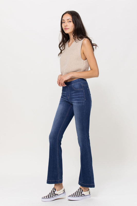 Mid Rise Double Rolled Cuff Pull On Crop Skinny