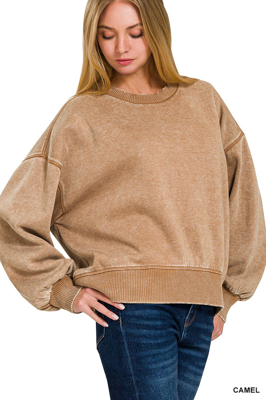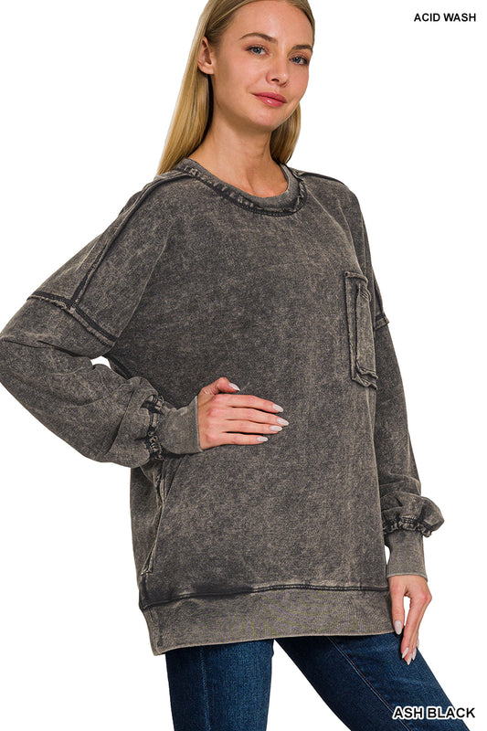 ACID WASH FLEECE OVERSIZED PULLOVER